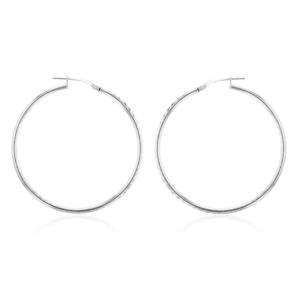 Sterling Silver Diamond Cut 40mm Hoop Earrings