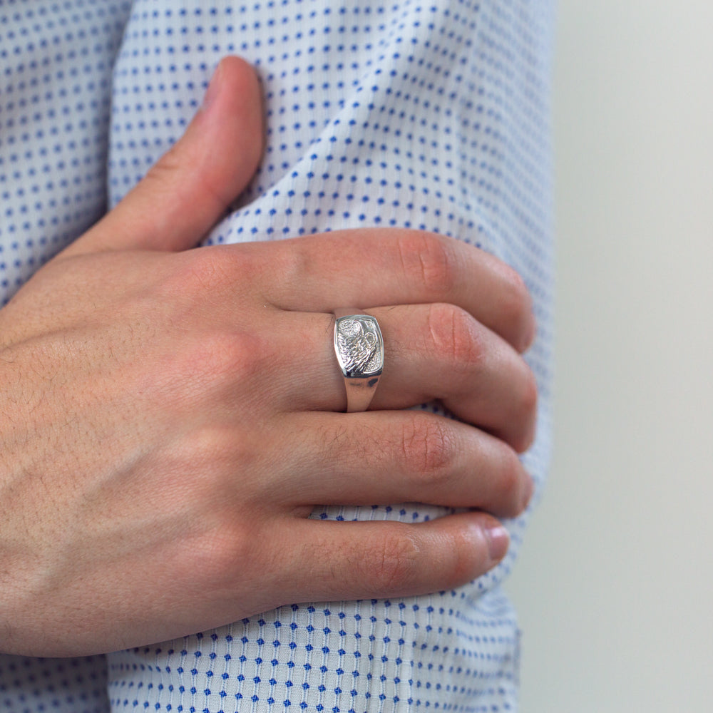Soar to new heights with our Sterling Silver Diamond Eagle Ring – a unique symbol of strength and freedom. This striking ring showcases intricate engraving work that brings the majestic eagle to life, capturing the essence of confidence and trust. This ring is a perfect wedding ring for a husband-to-be or a gift for him.