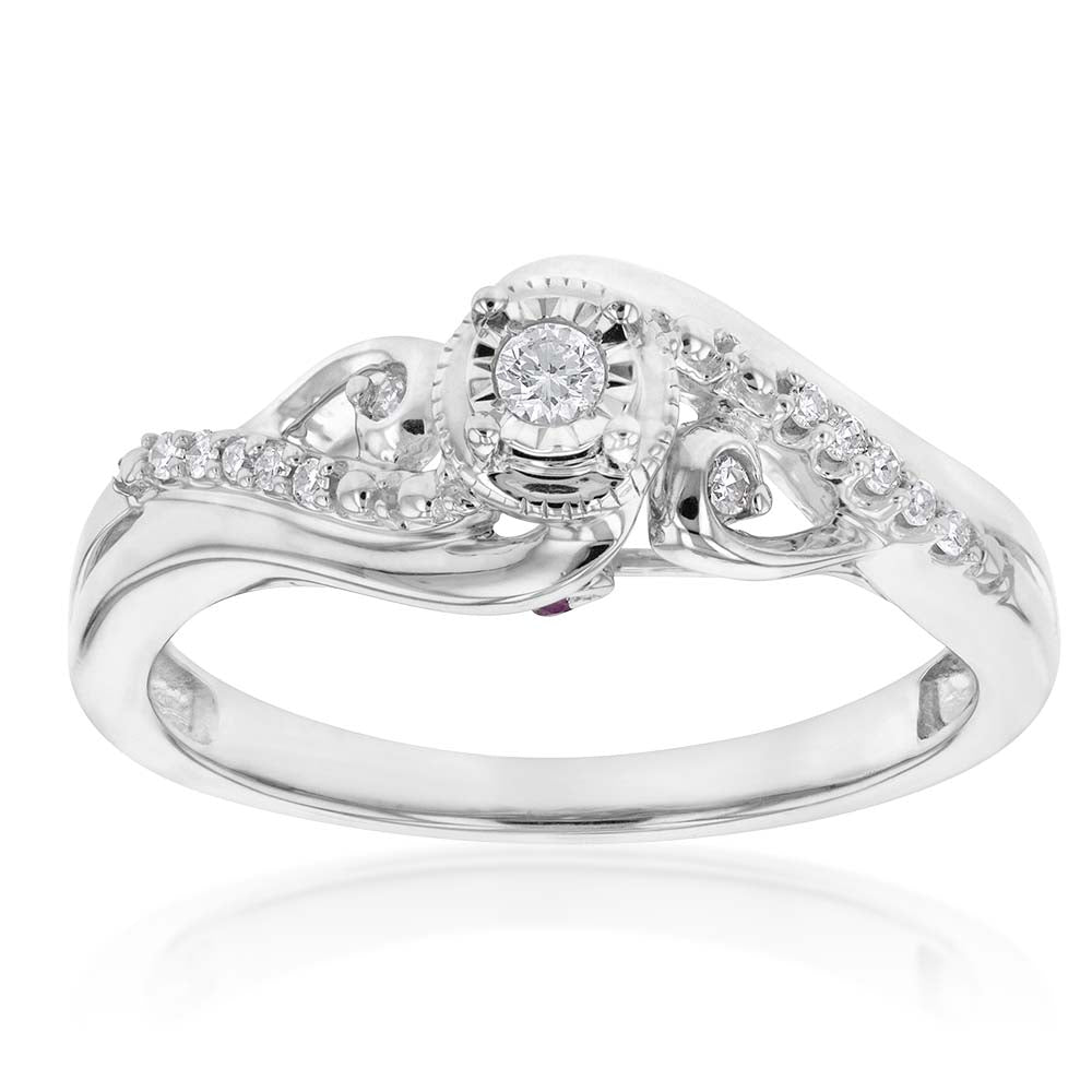 Sterling Silver Diamond Ring with 11 Diamonds and Pink Sapphire Accents