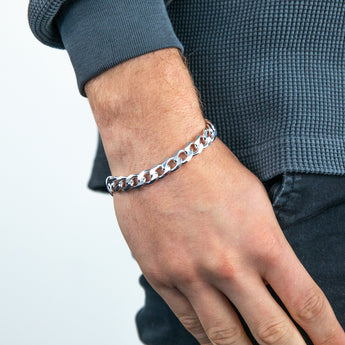 • A classic curb bracelet style comprises flat interlocked links which enables it to sit comfortably and smoothly on the wrist.