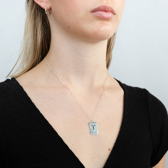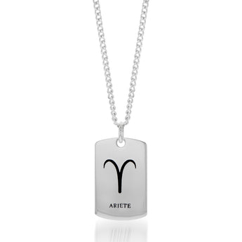 Sterling Silver Dog Tag With Aries Zodiac/Star Sign Pendant