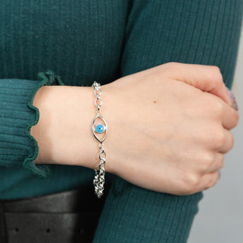 Sterling Silver Evil Eye Fancy 19cm Belcher Bracelet