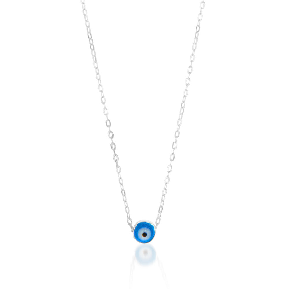 Sterling Silver Evil Eye Pendant On 42+3cm Chain