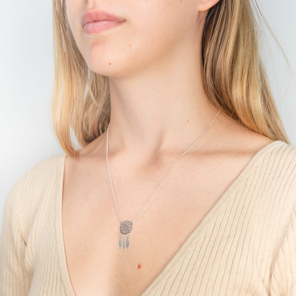 Sterling Silver Fancy Dreamcatcher Pendant With 45cm Chain