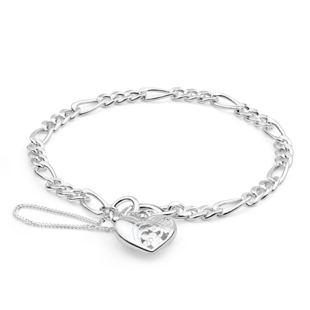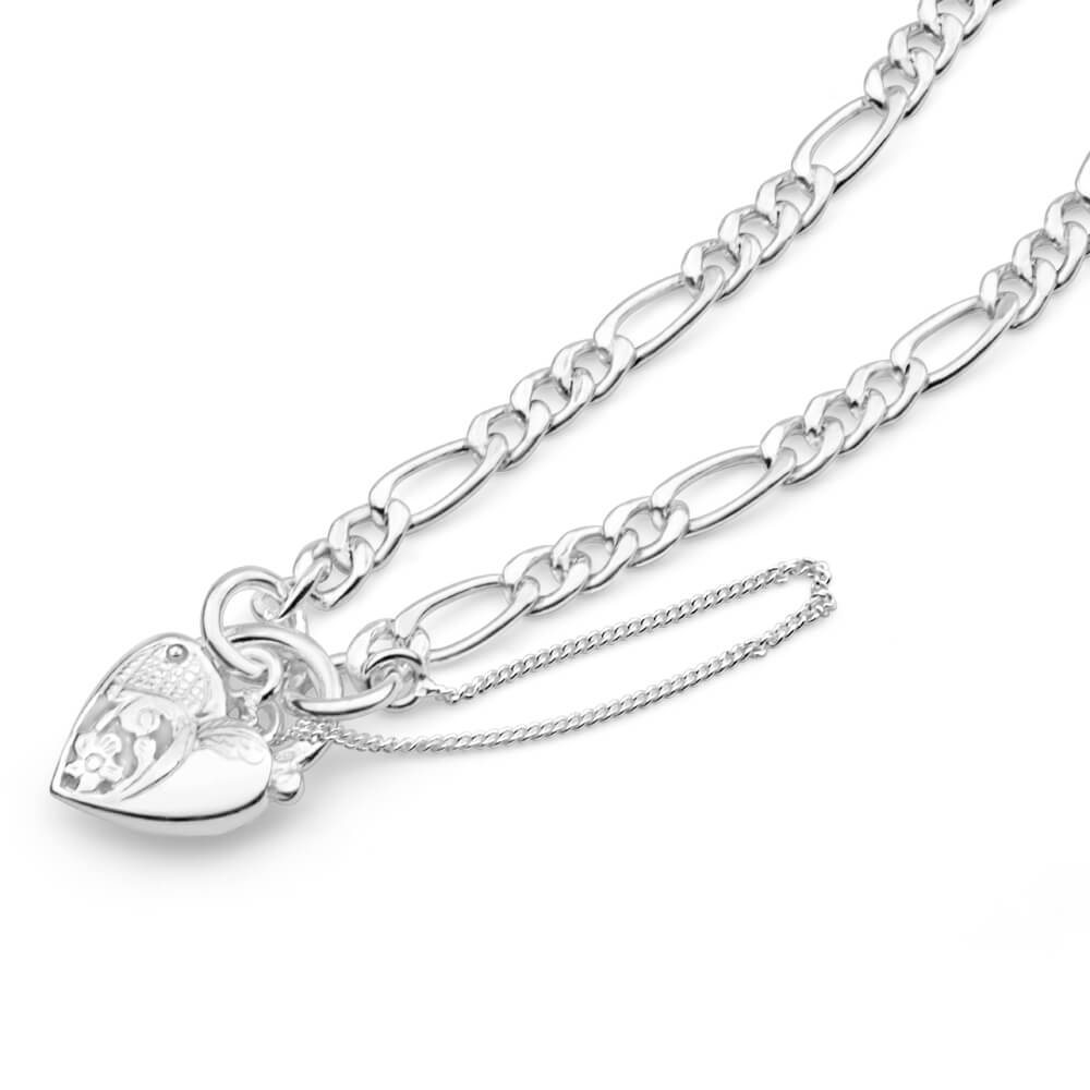 Sterling Silver Figaro 1:3 Heart Padlock Bracelet
