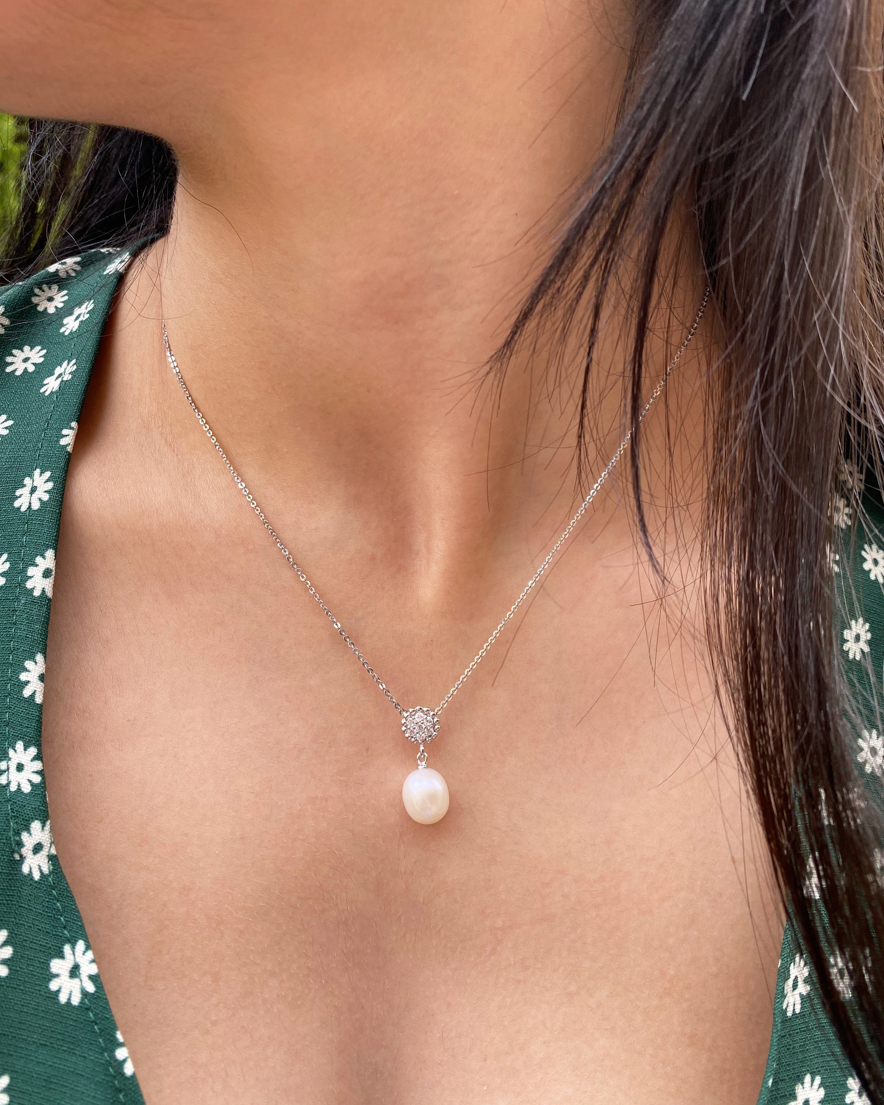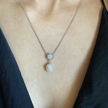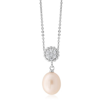 Sterling Silver Freshwater Pearl 8.5-9mm & Zirconia Pendant