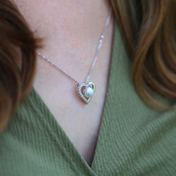 Sterling Silver Freshwater Pearl and Cubic Zirconia Heart Pendant