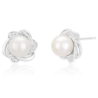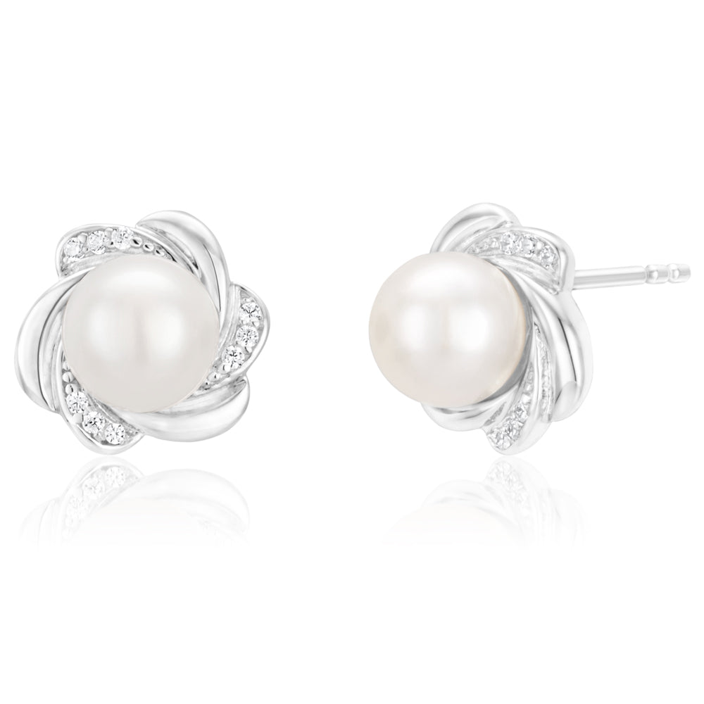 Sterling Silver Freshwater Pearl and Zirconia Stud Earrings