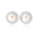 Sterling Silver Freshwater Pearl and Zirconia Stud Earrings