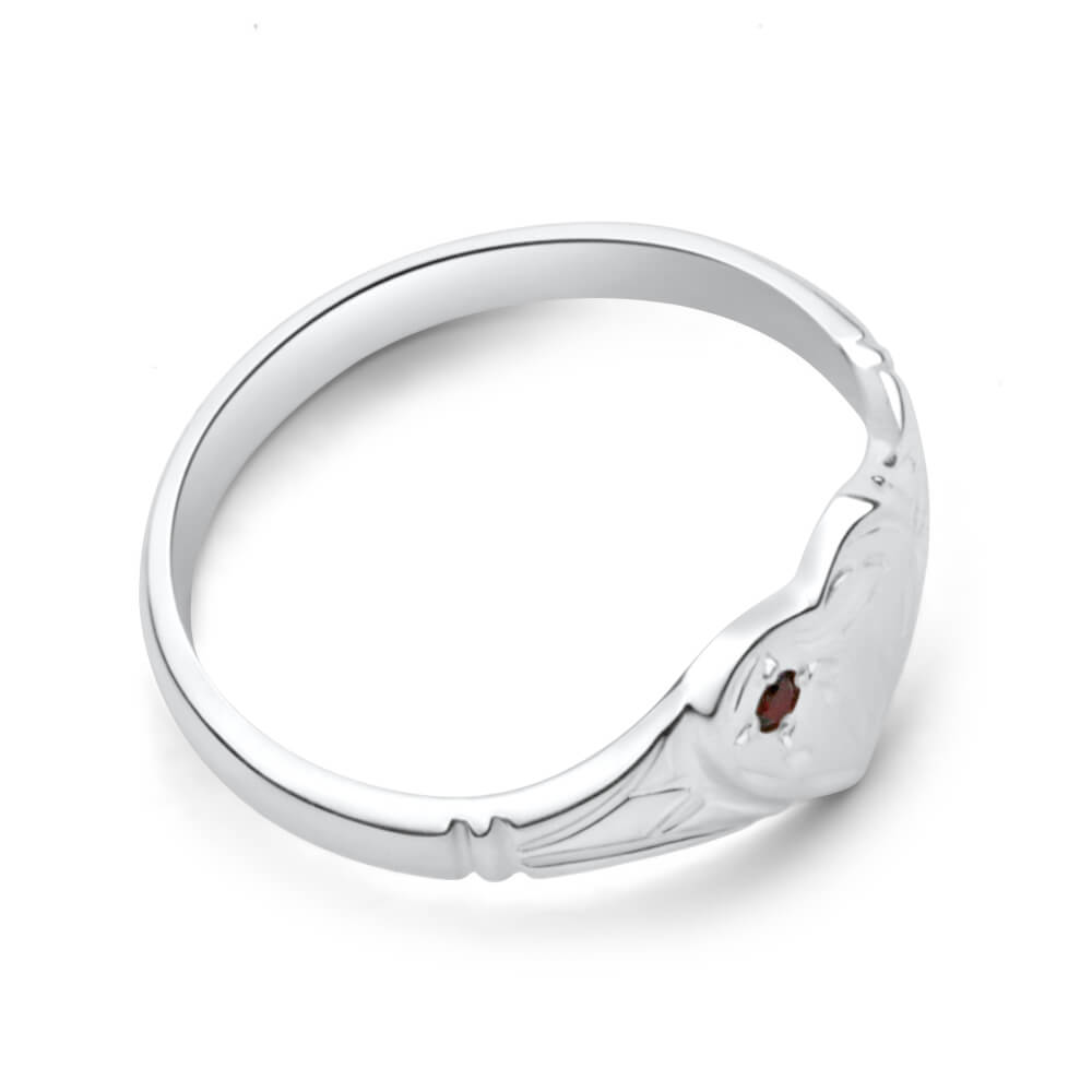 Sterling Silver Garnet Heart Signet Ring Size L
