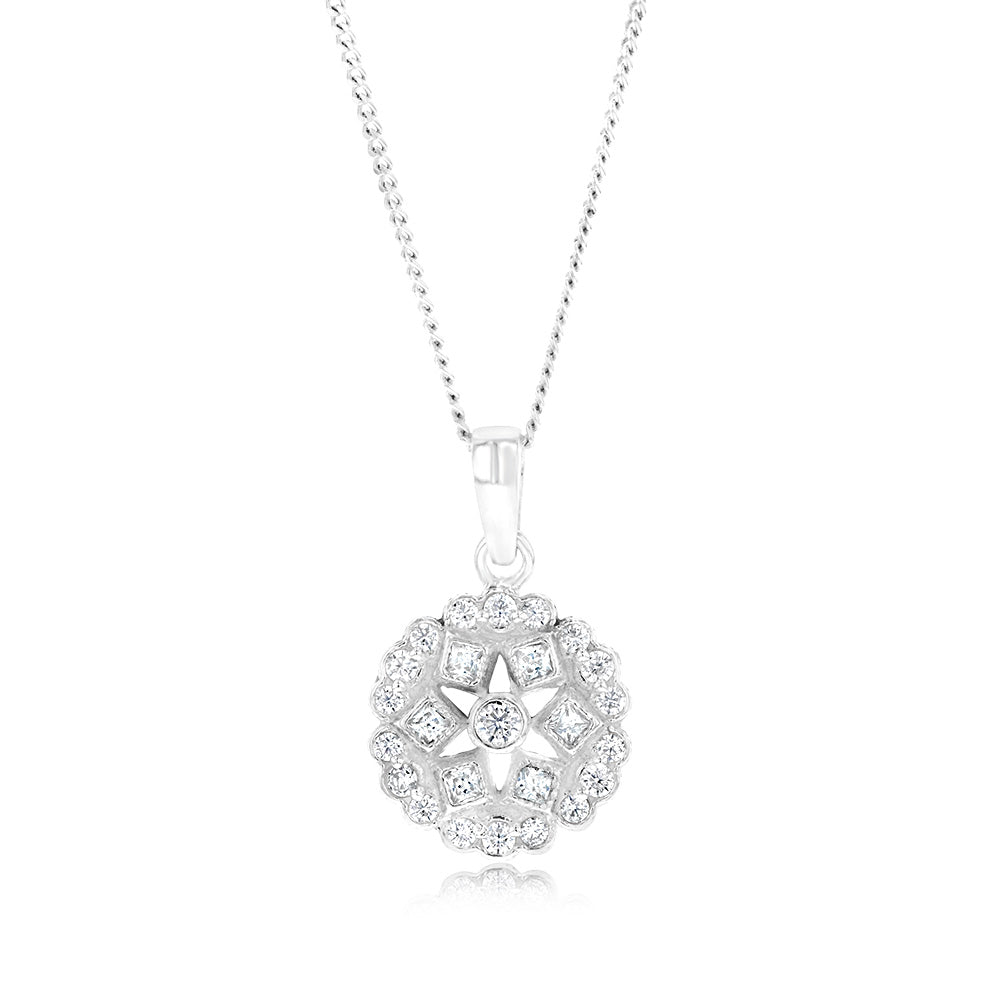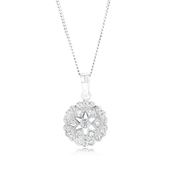 Sterling Silver Geometric Flower Cubic Zirconia Pendant