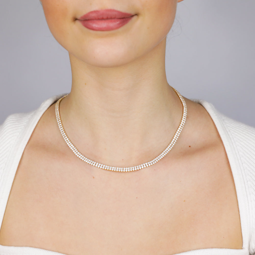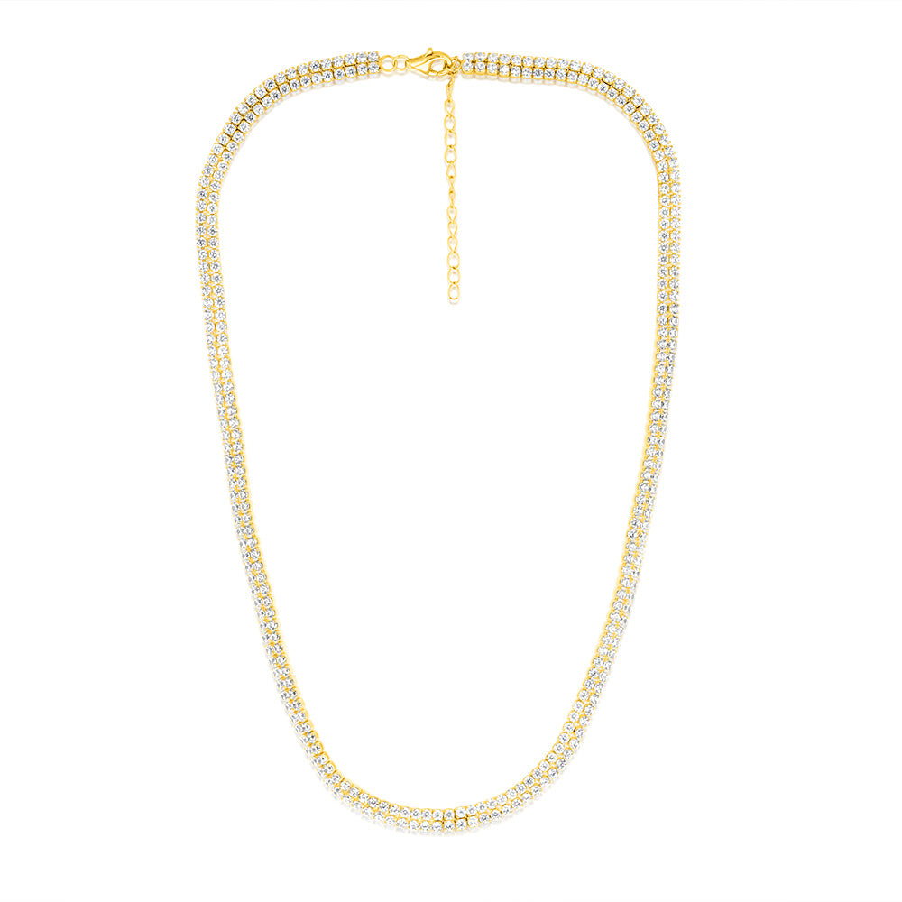 Sterling Silver Gold Plated 2mm Cubic Zirconia Two Row 40+5cm Tennis Chain