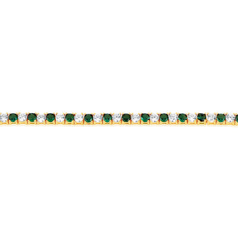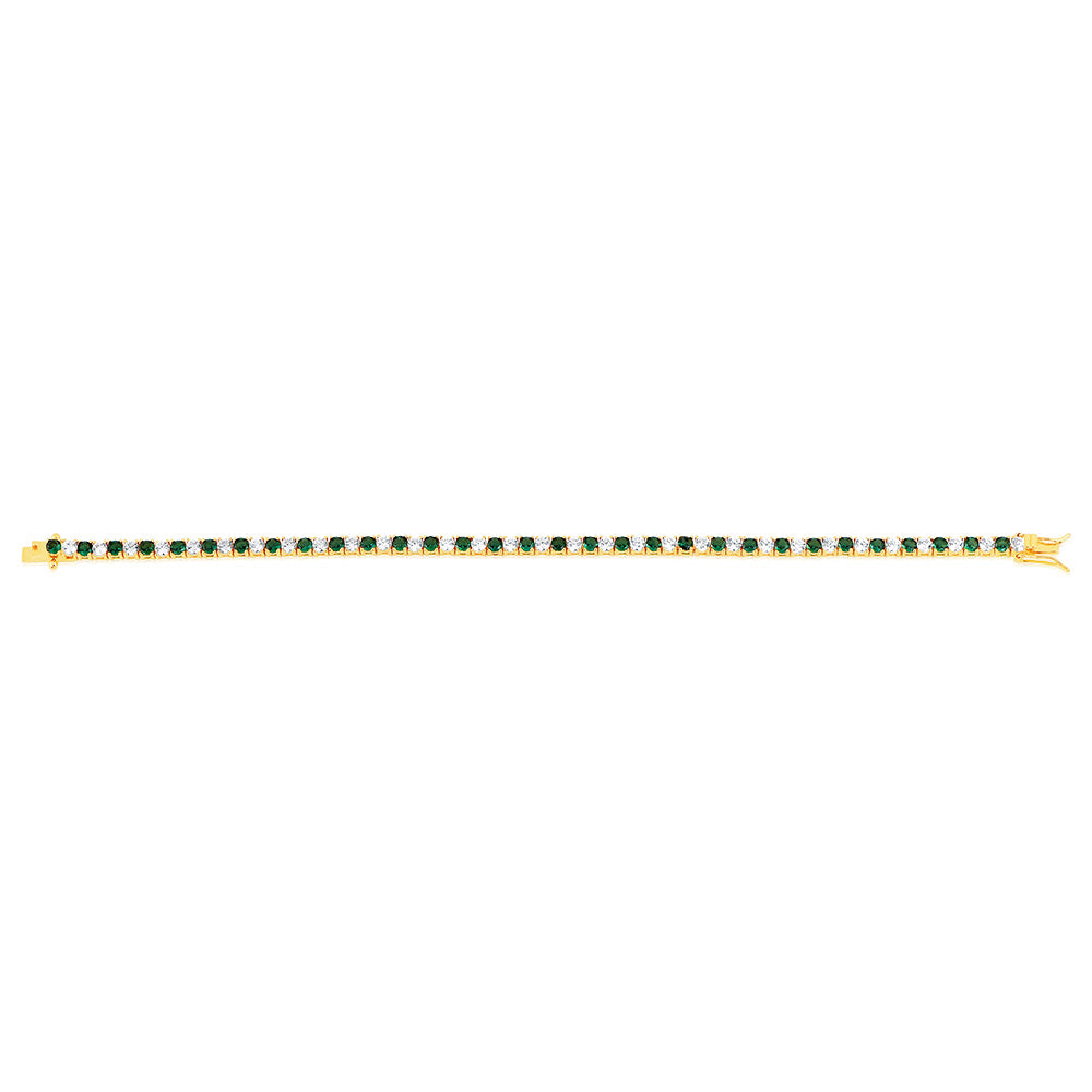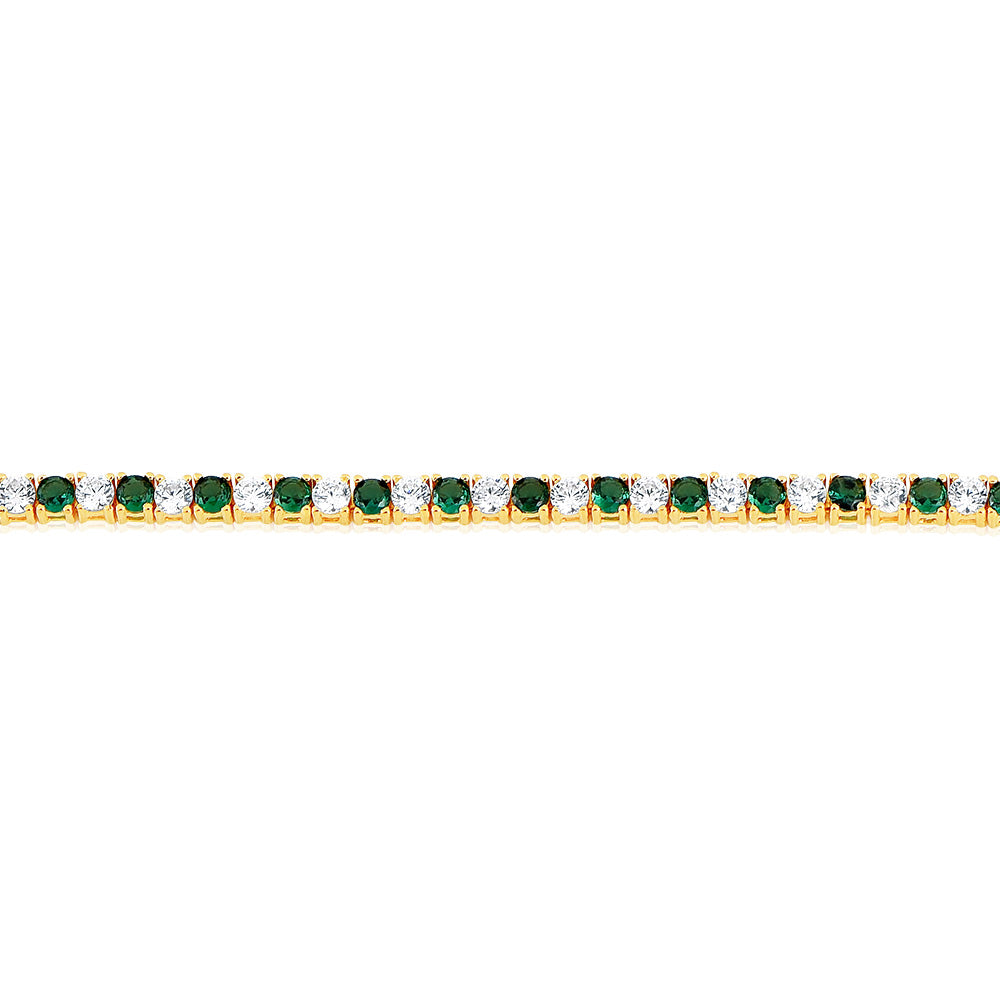 Sterling Silver Gold Plated 3mm White And Emerald Green Cubic Zirconia 19cm Bracelet