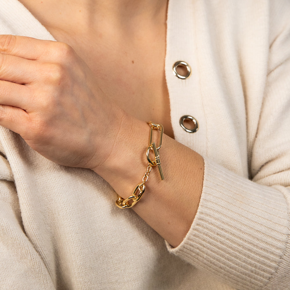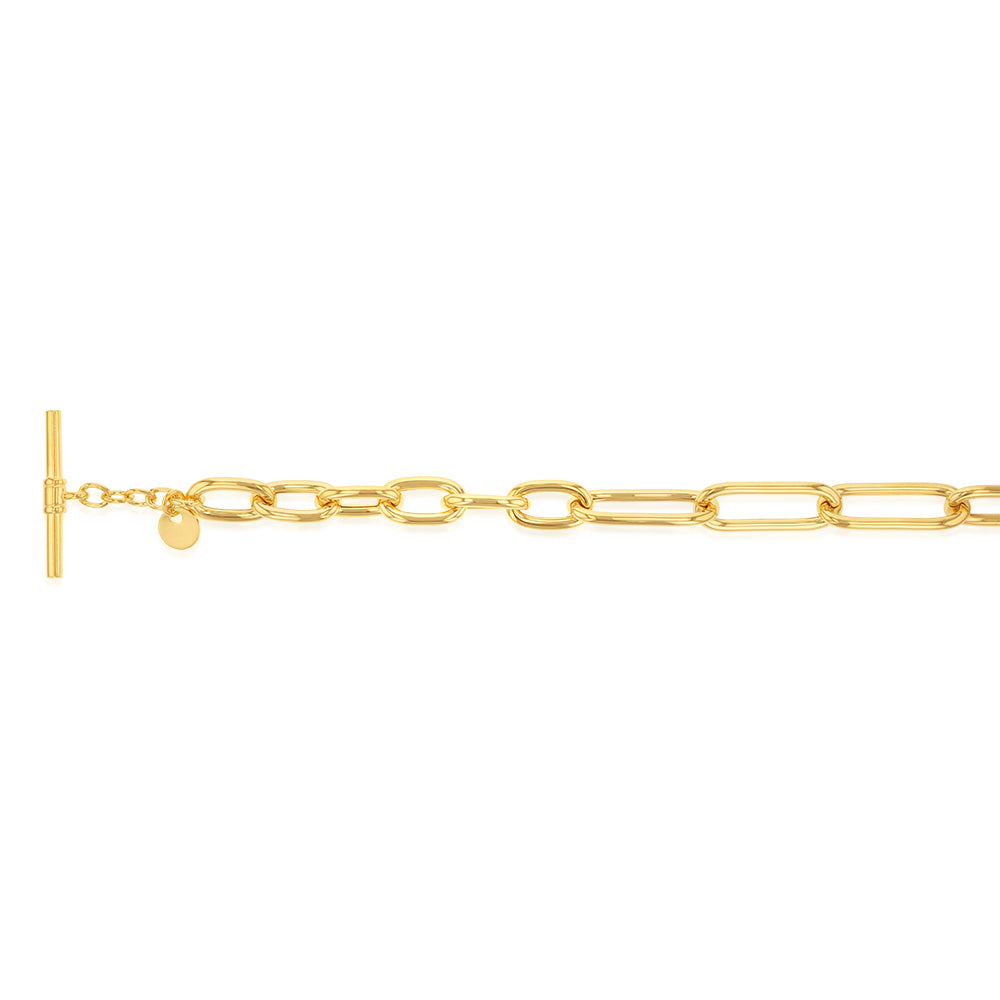 Sterling Silver Gold Plated Belcher Links T Bar Clasp 19cm Bracelet