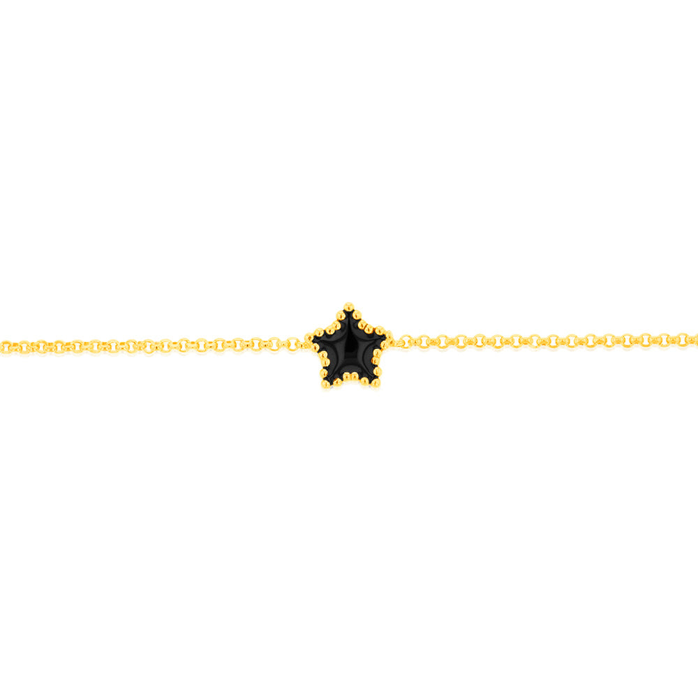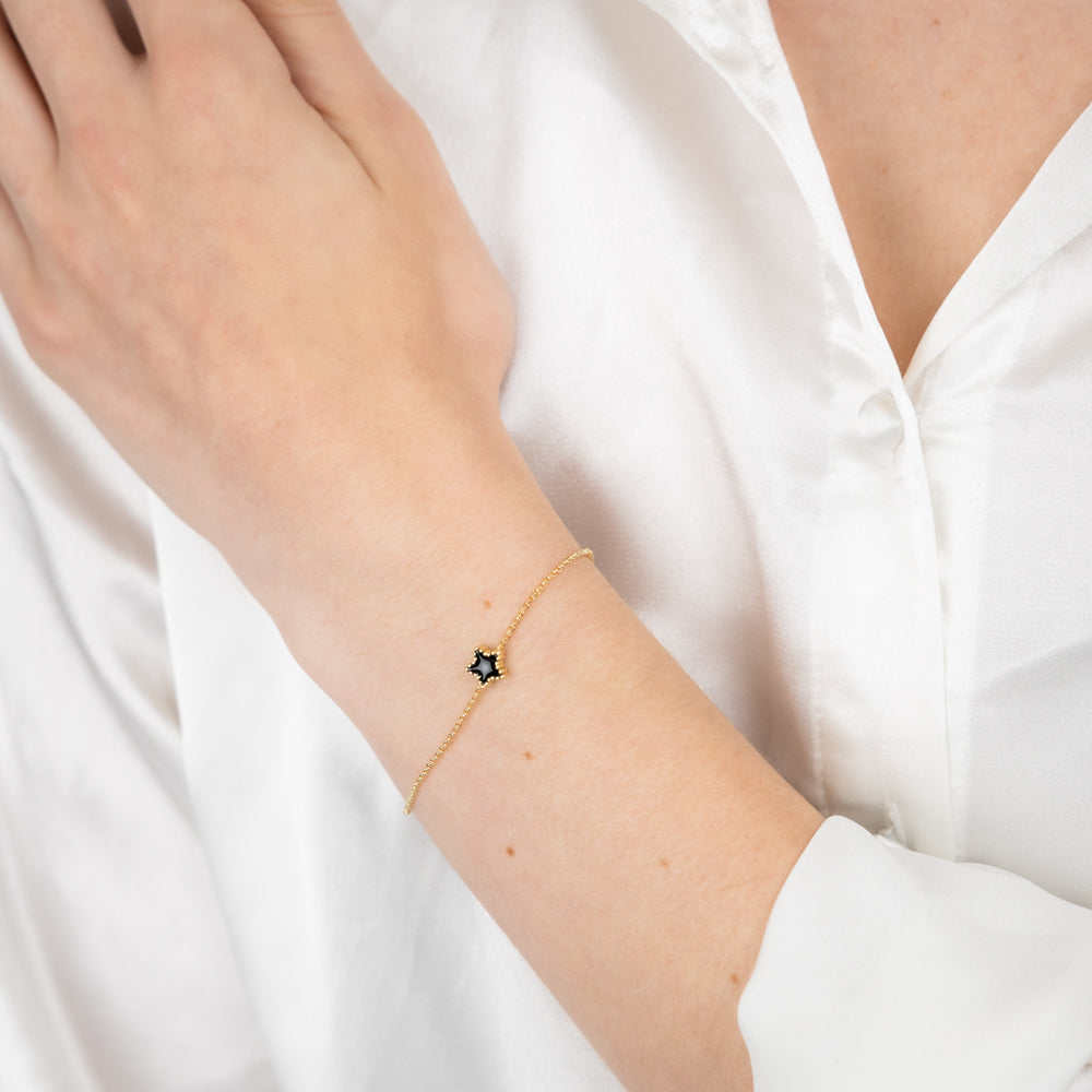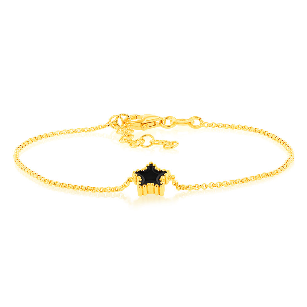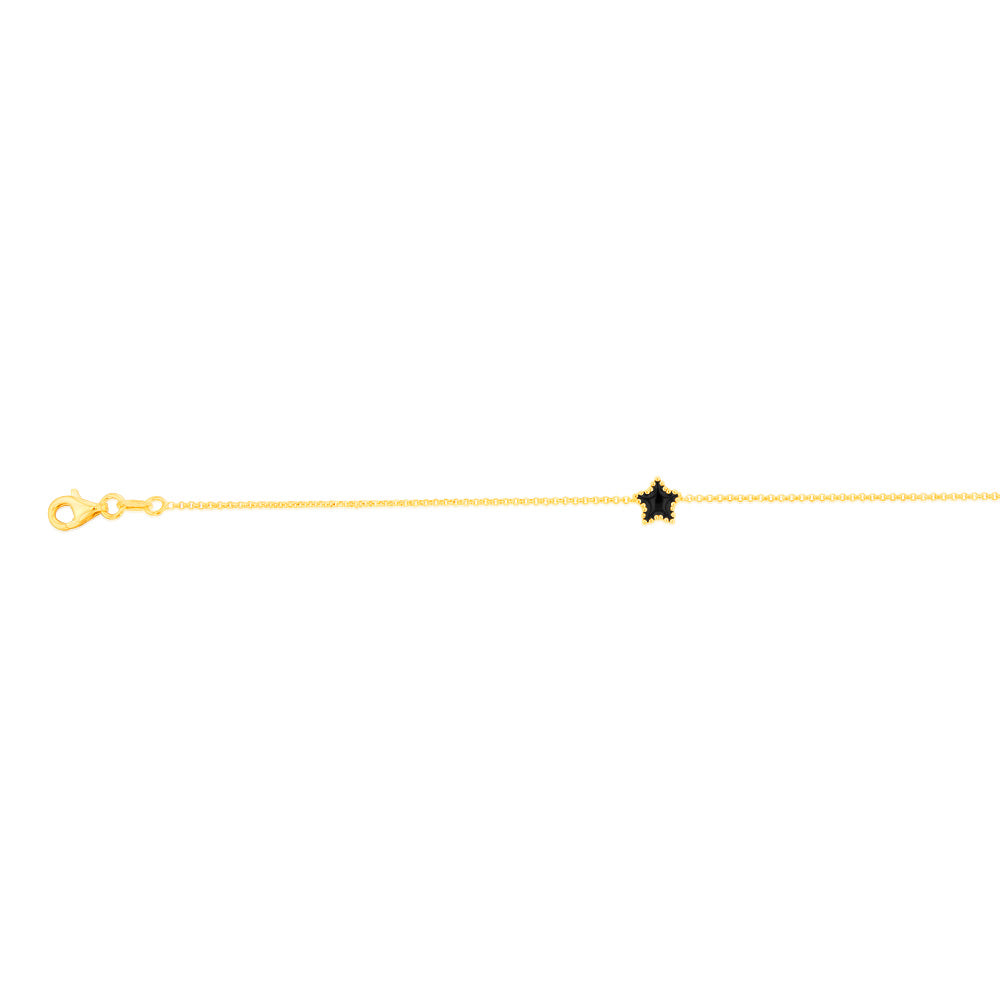 Sterling Silver Gold Plated Black Enamel Star 17+3cm Bracelet