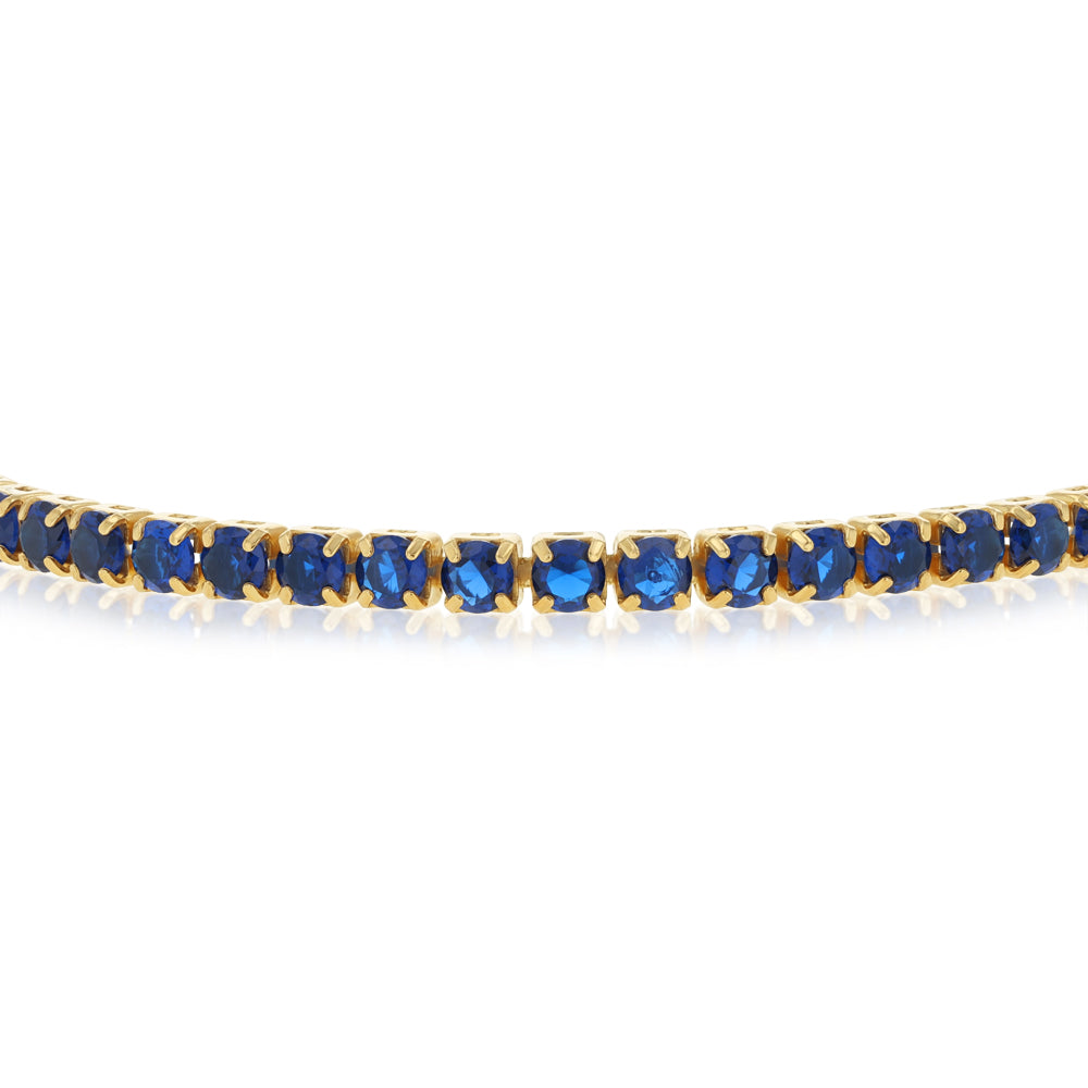 Sterling Silver Gold Plated Blue Cubic Zirconia Adjustable Bracelet