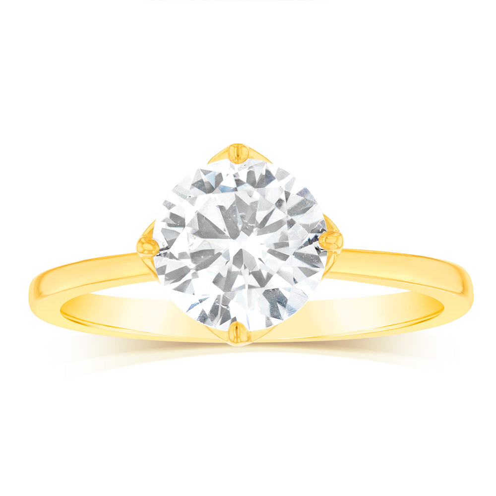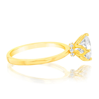 Sterling Silver Gold Plated Brilliant Cut White Zirconia Ring
