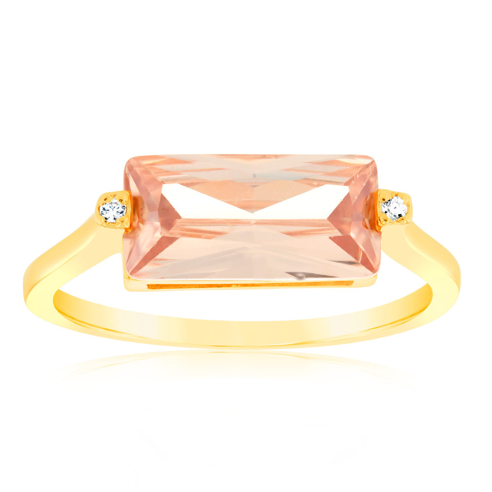 Sterling Silver Gold Plated Champane Rectangular Zirconia Ring