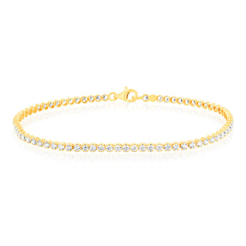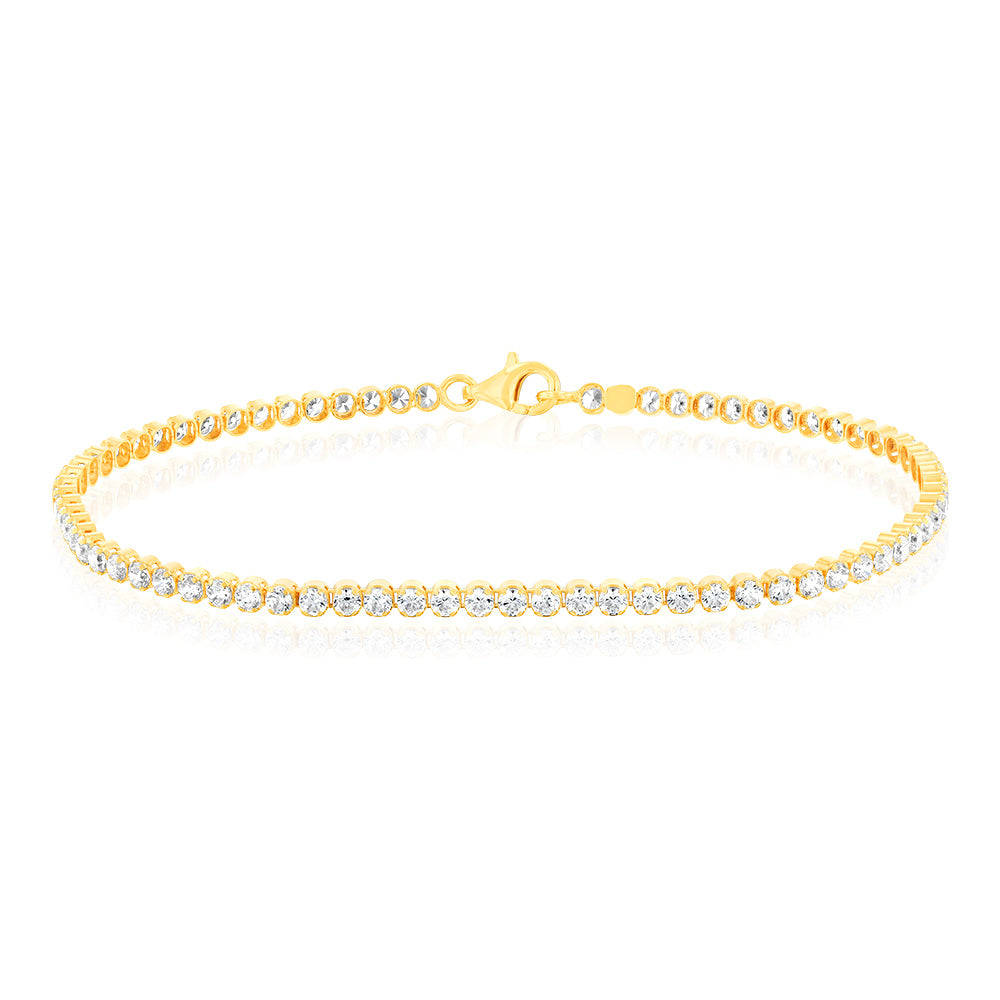 Sterling Silver Gold Plated Cubic Zirconia 2.5mm Tennis 19cm Bracelet