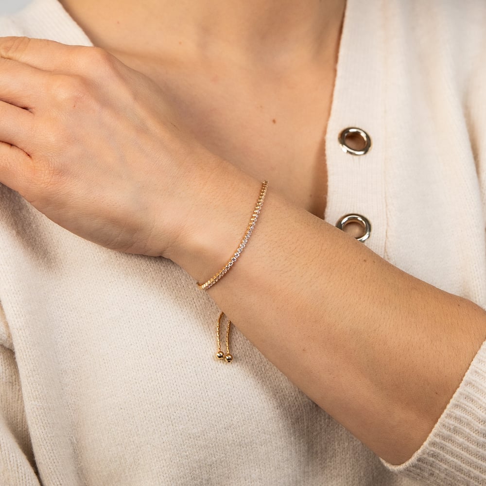 Sterling Silver Gold Plated Cubic Zirconia Adjustable Tennis Bracelet