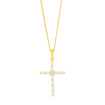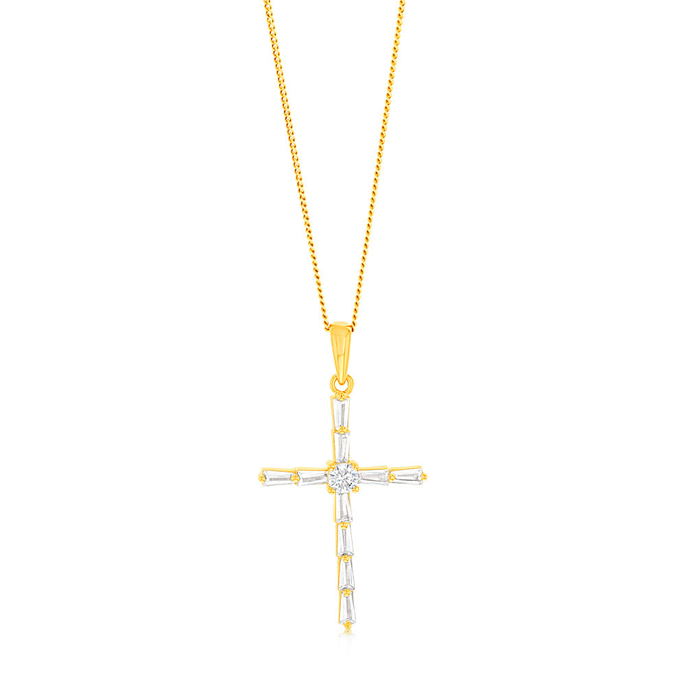 Sterling Silver Gold Plated Cubic Zirconia Cross Pendant