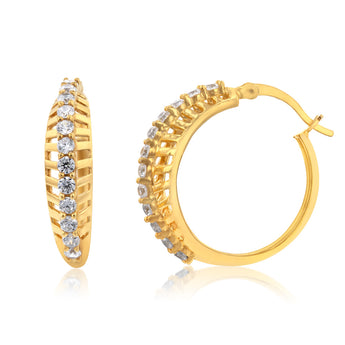Sterling Silver Gold Plated Cubic Zirconia Hoop Earrings