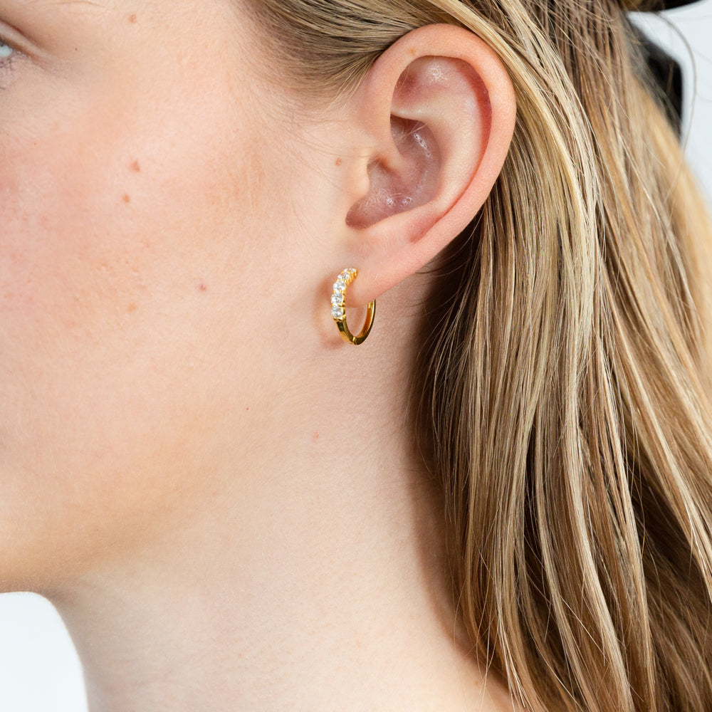 Sterling Silver Gold Plated Cubic Zirconia Hoop Earrings