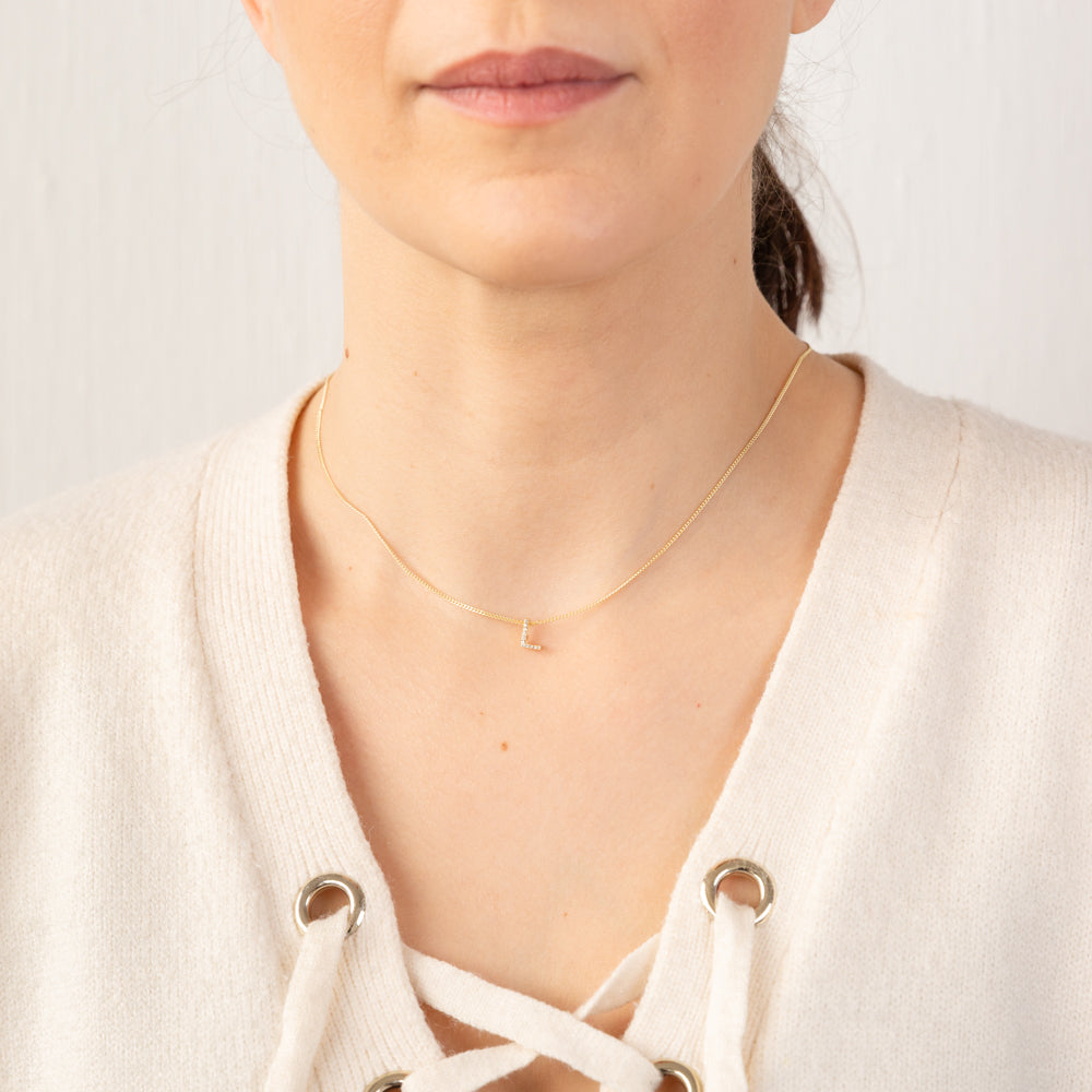 Sterling Silver Gold Plated Cubic Zirconia Initial "L" Pendant On 42cm Chain