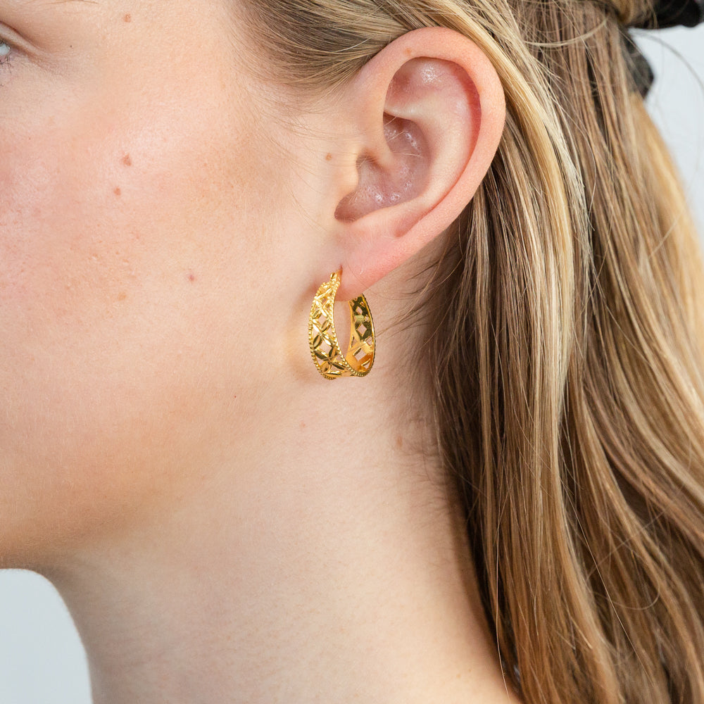 Sterling Silver Gold Plated Diamond Cut Mesh Hoop Earrings