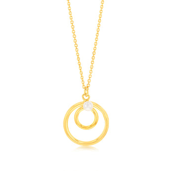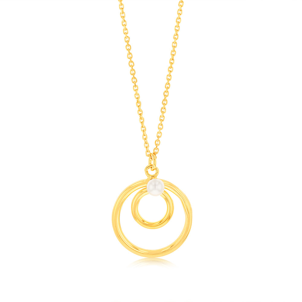 Sterling Silver Gold Plated Double Circle Synthetic Pearl Pendant on 45cm Chain