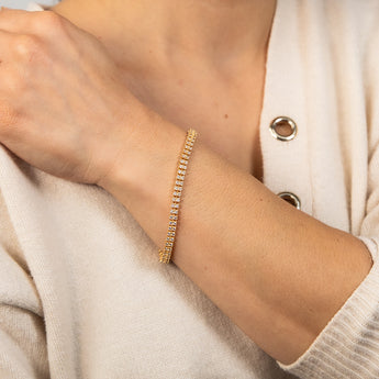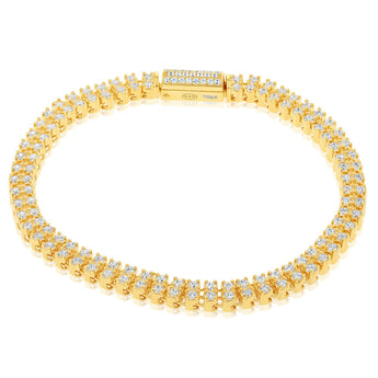 Sterling Silver Gold Plated Double Row Cubic Zirconia Tennis 19cm Bracelet