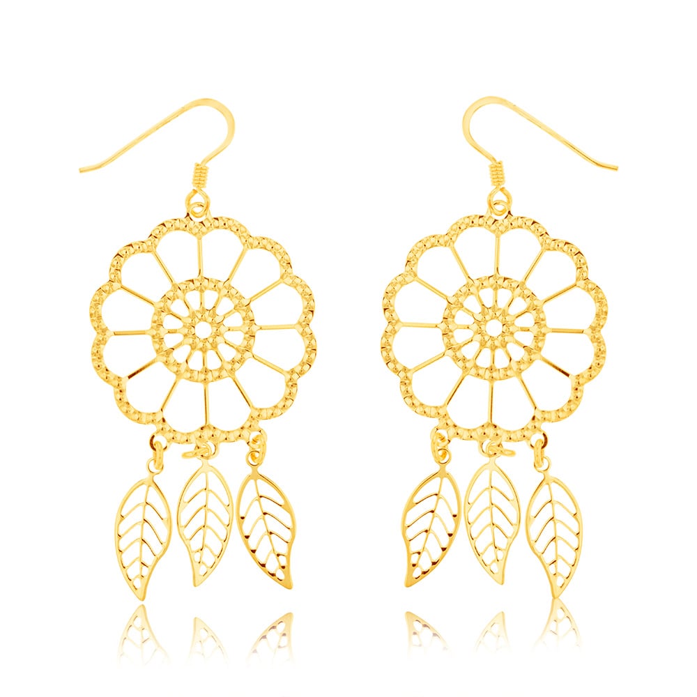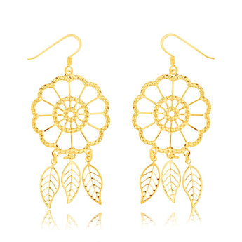 Sterling Silver Gold Plated Dream Catcher Drop Earrings