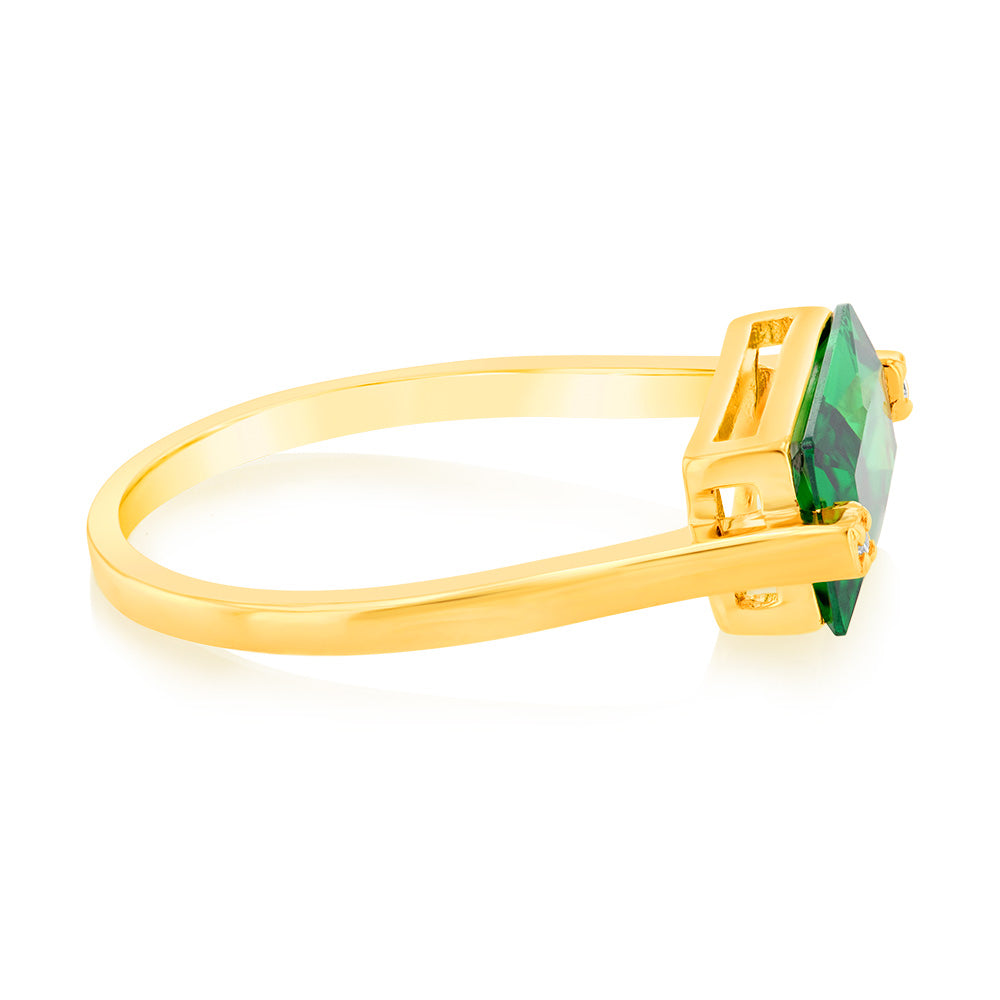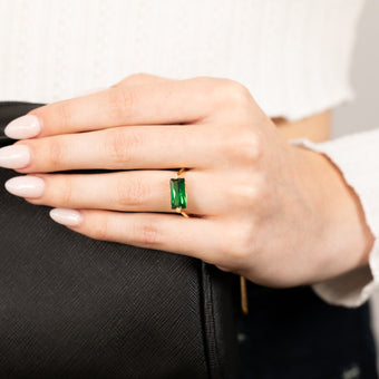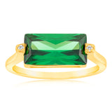 Sterling Silver Gold Plated Emerald Colour Rectangular Zirconia Ring