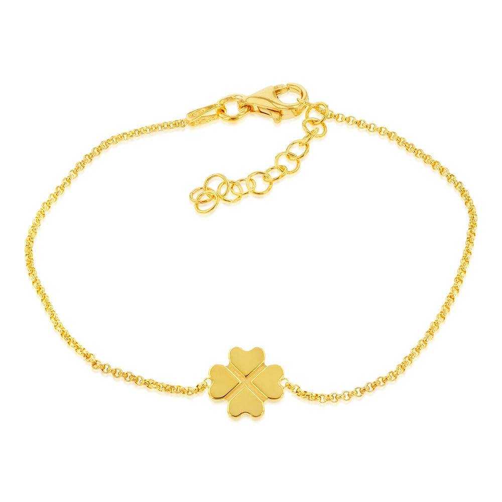 Sterling Silver Gold Plated Four Leaf Clover 19cm Bracelet