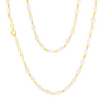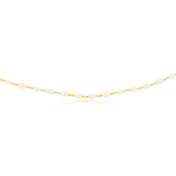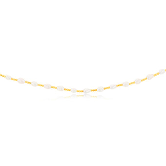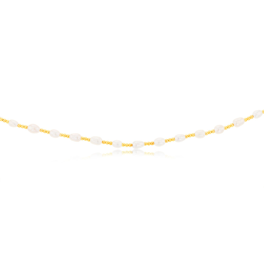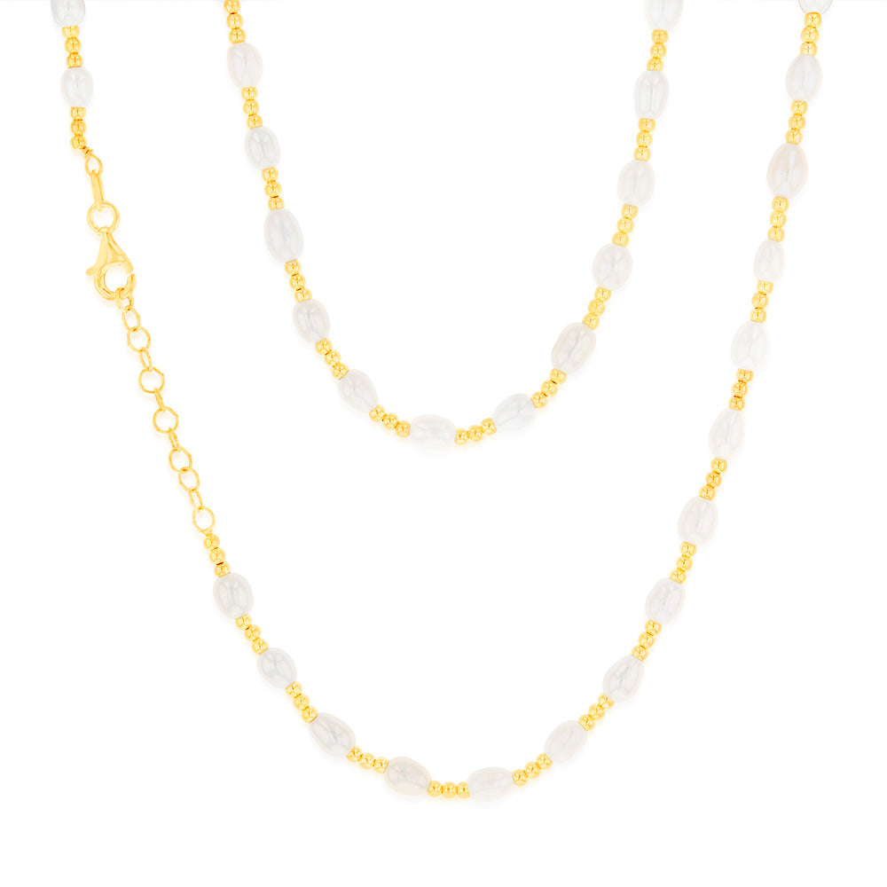 Sterling Silver Gold Plated Fresh Water Pearl And Gold Beads 40+3cm Chain