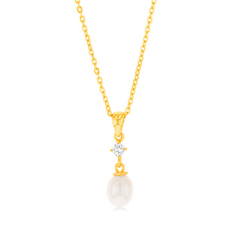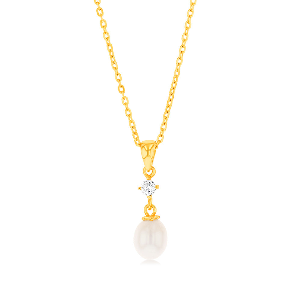 Sterling Silver Gold Plated Fresh Water Pearl Pendant On Chain