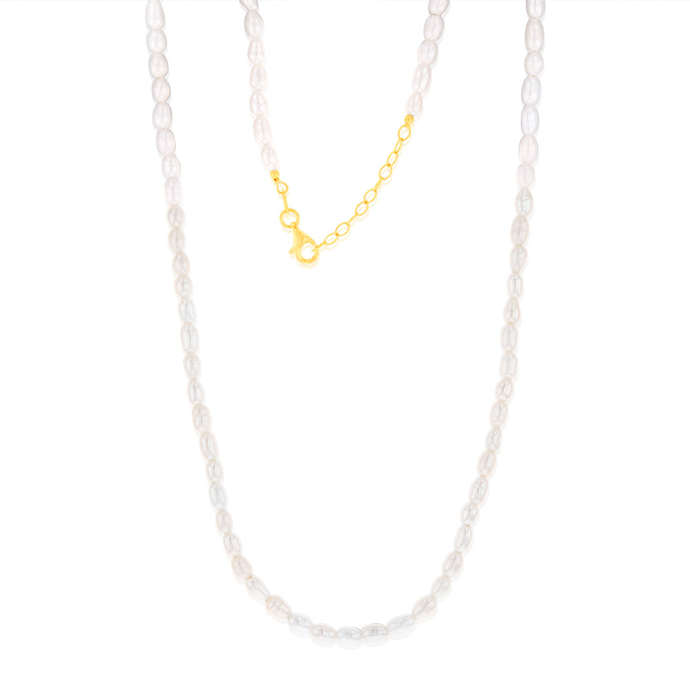 Sterling Silver Gold Plated Fresh Water Pearls 42+3cm Chain