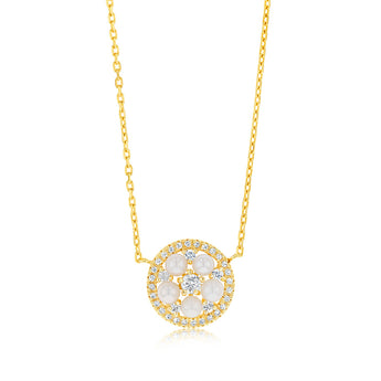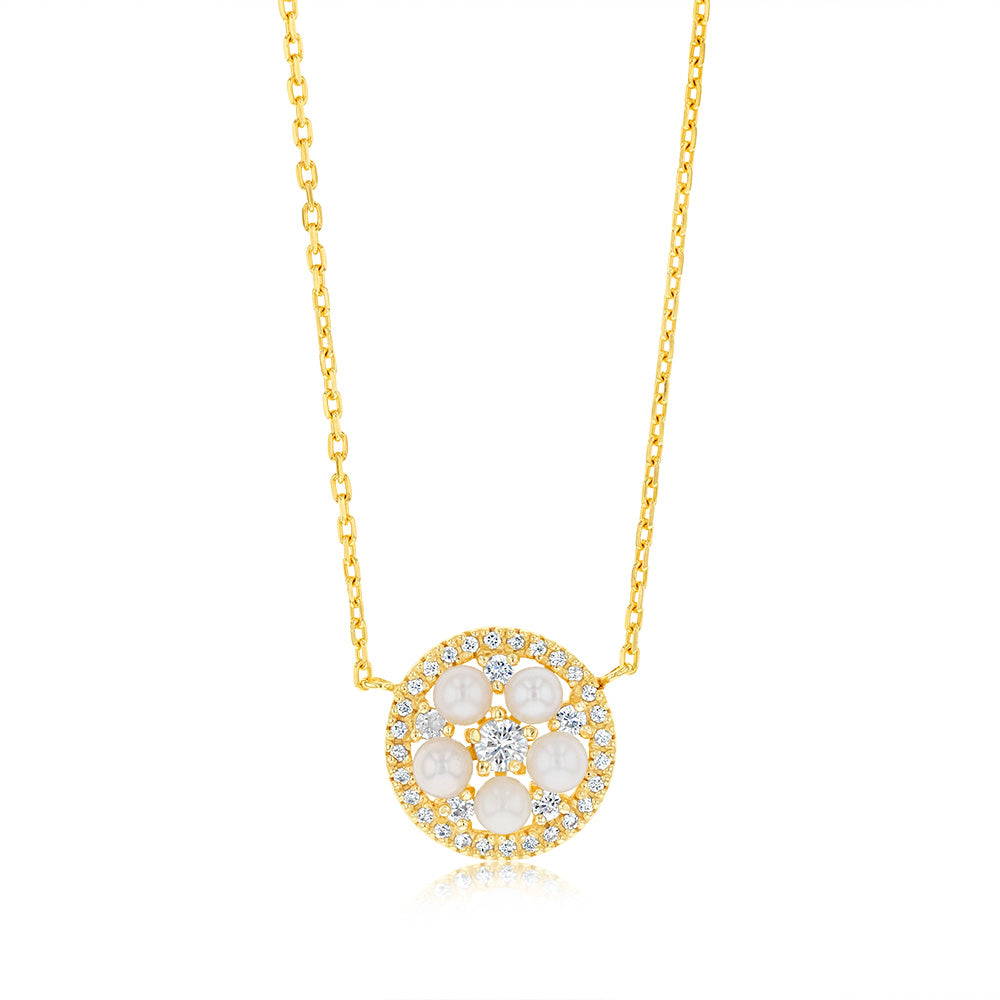 Sterling Silver Gold Plated Fresh Water Pearls And Zirconia Pendant On 45cm Chain