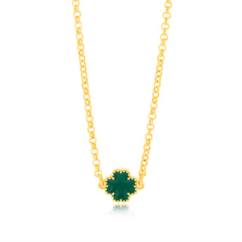 Sterling Silver Gold Plated Green Four Leaf Enamel Flower Pendant On chain