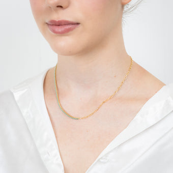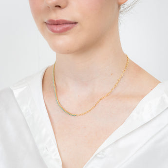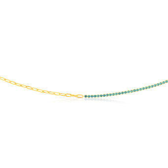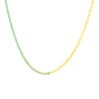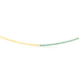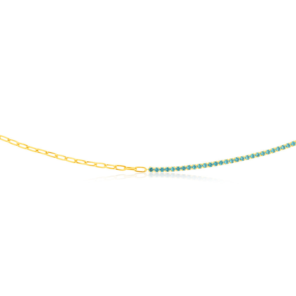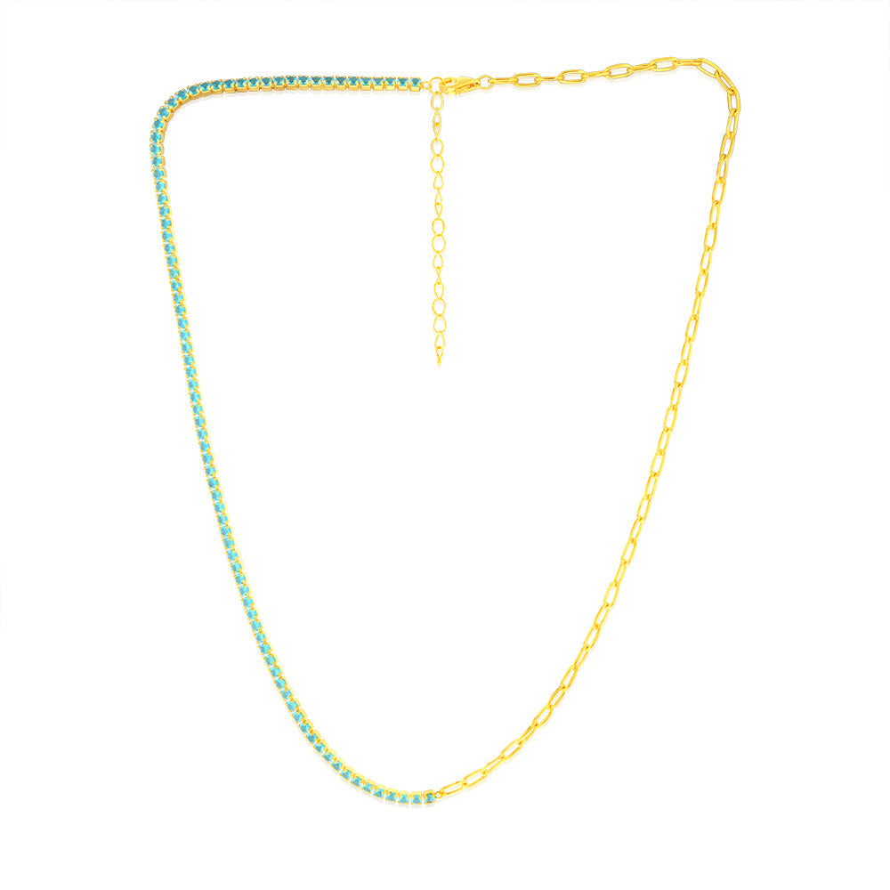 Sterling Silver Gold Plated Greenish Blue Zirconia Paperclip 45.7cm Chain