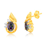 Sterling Silver Gold Plated Mystic Topaz & Zirconia Wing Shaped Stud Earrings