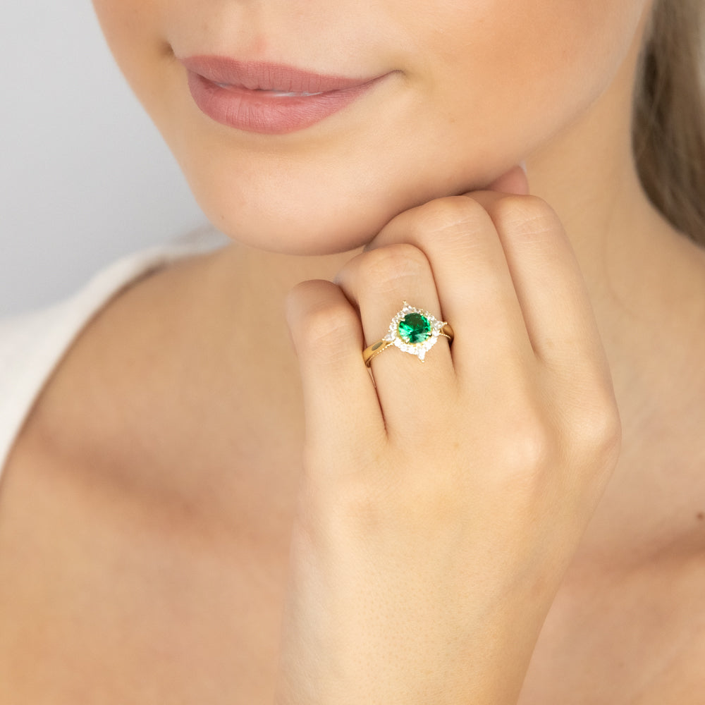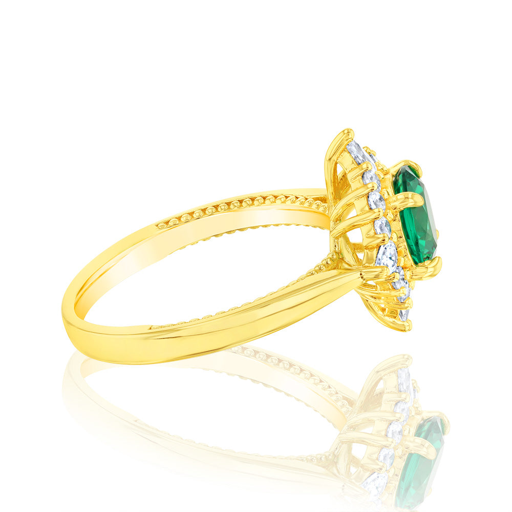 Sterling Silver Gold Plated Nano Emerald And White Zirconia Fancy Ring