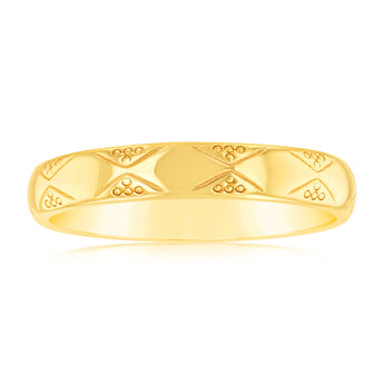 Sterling Silver Gold Plated Patterned Half Round Comfort Fit Band Ring