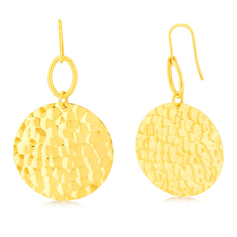 Sterling Silver Gold Plated Patterned Round Disc Hook Earrings