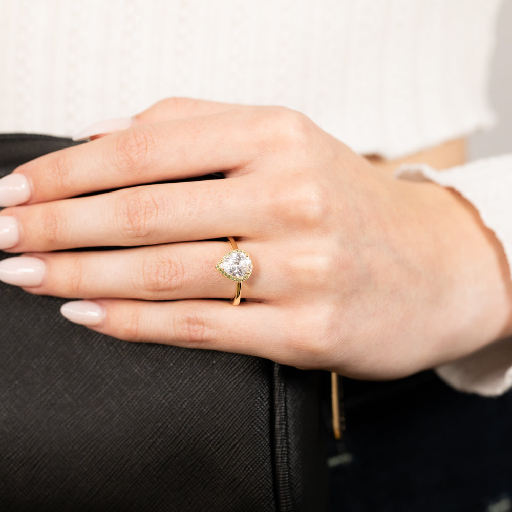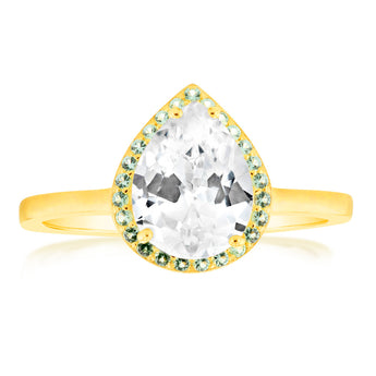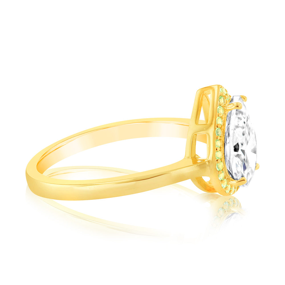 Sterling Silver Gold Plated Pear Shaped Green And White Zirconia Ring