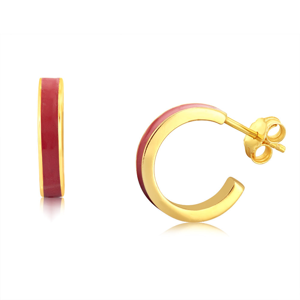 Sterling Silver Gold Plated Pink Enamel 15mm Hinged Hoop Earrings