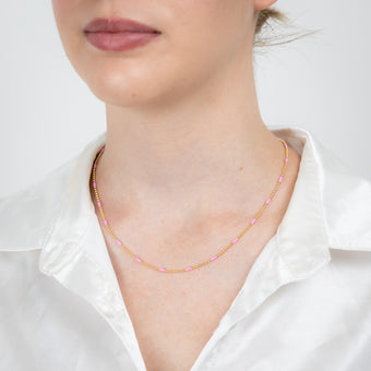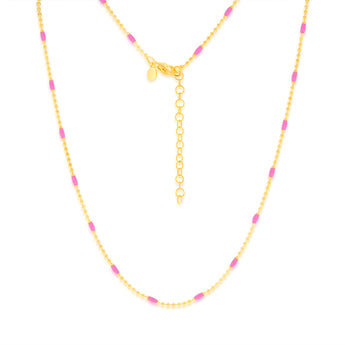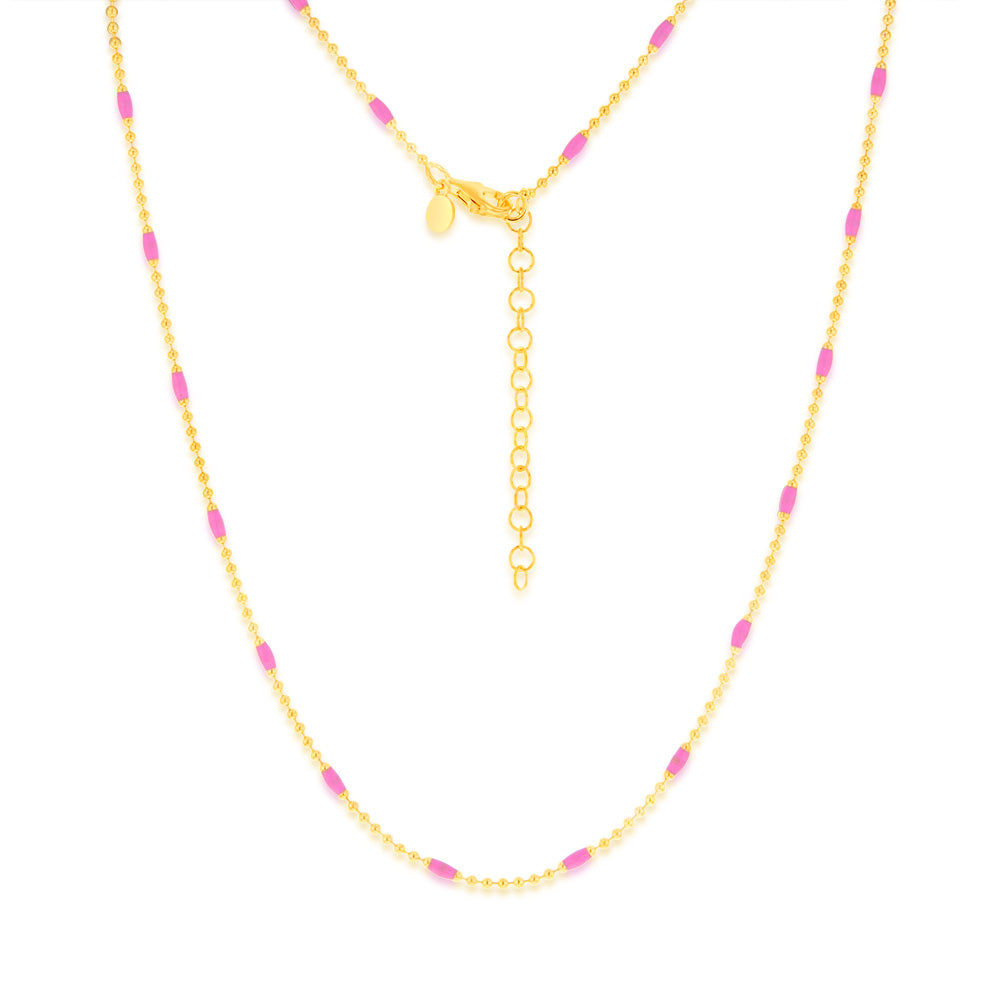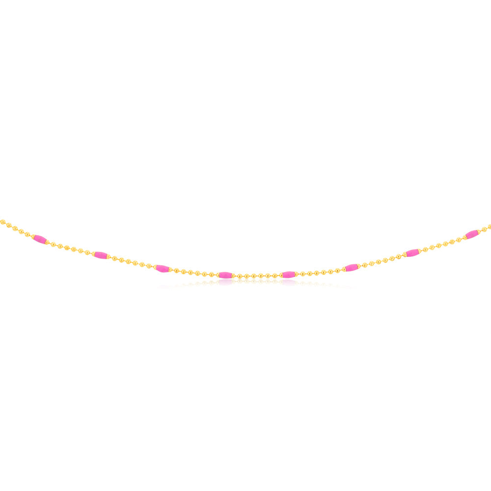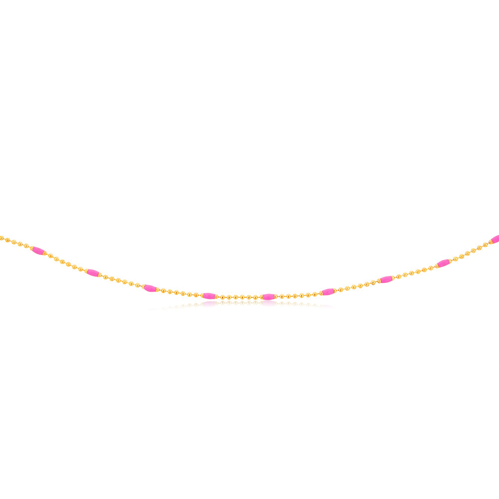 Sterling Silver Gold Plated Pink Enamel Bead 45cm Chain