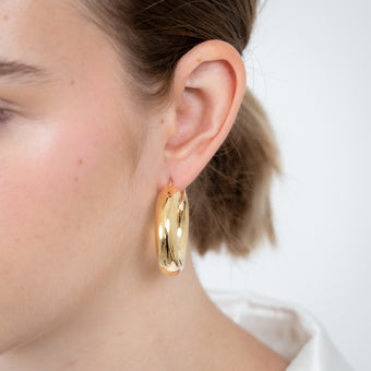 Sterling Silver Gold Plated Polished Tube 20mm Hoop Earrings