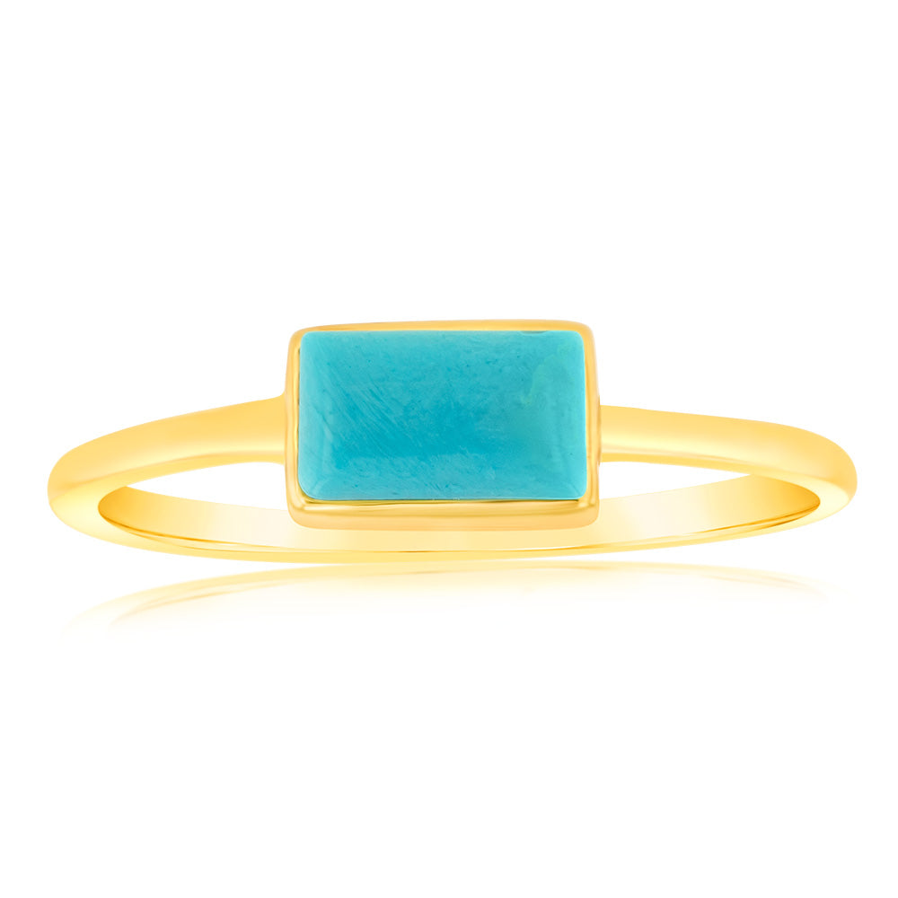 Sterling Silver Gold Plated Rectangle Natural Turquoise Ring