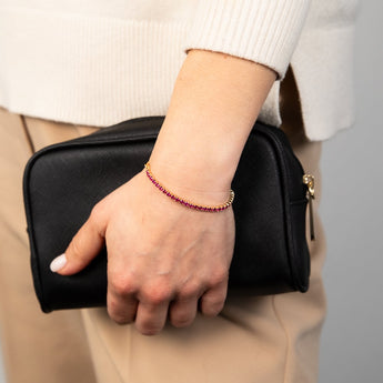 Sterling Silver Gold Plated Red Cubic Zirconia Adjustable Tennis Bracelet